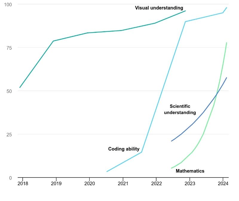 Accuracy of AI models in selected benchmarks (2018-2024), The International Energy Agency (IEA)