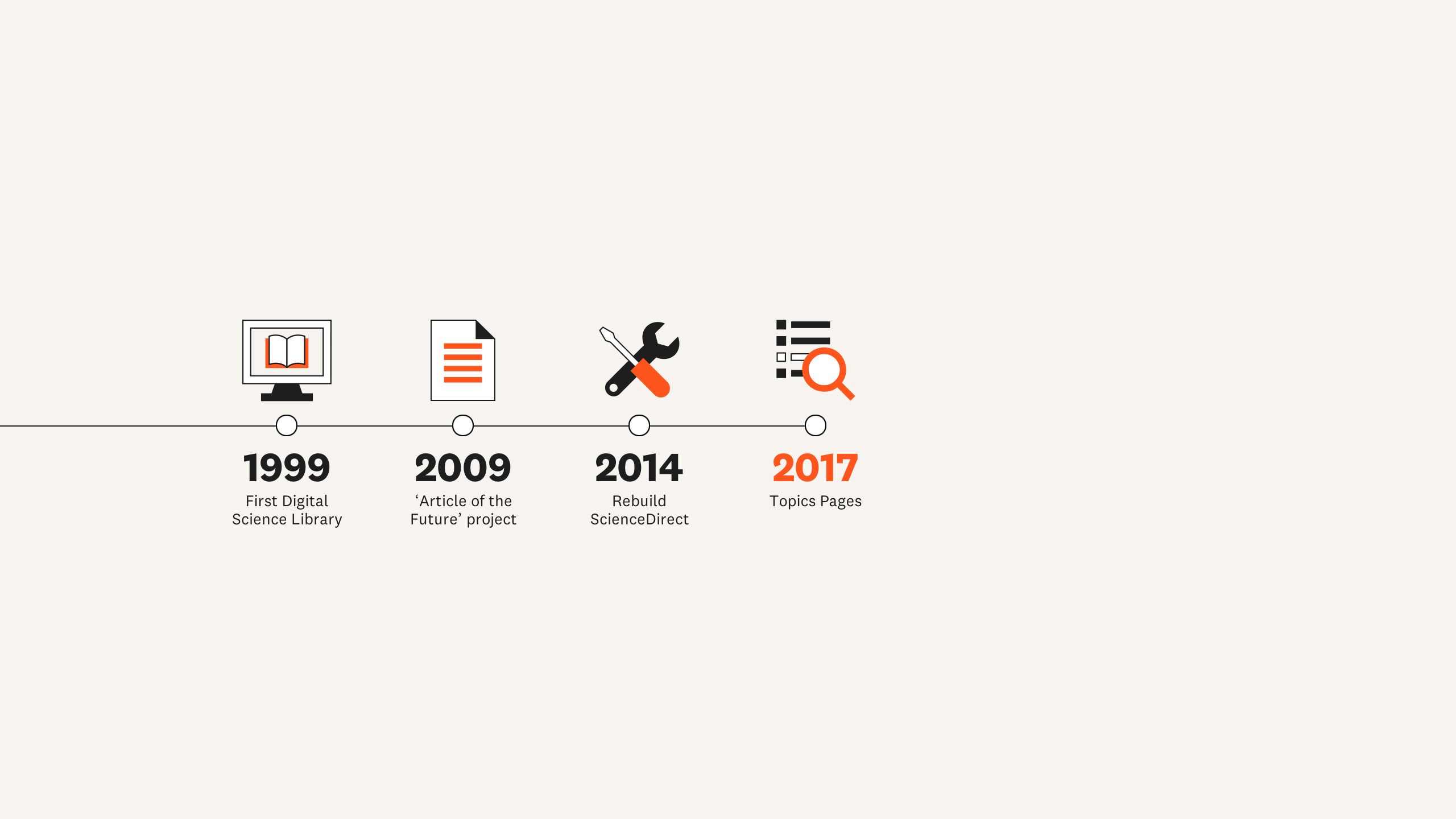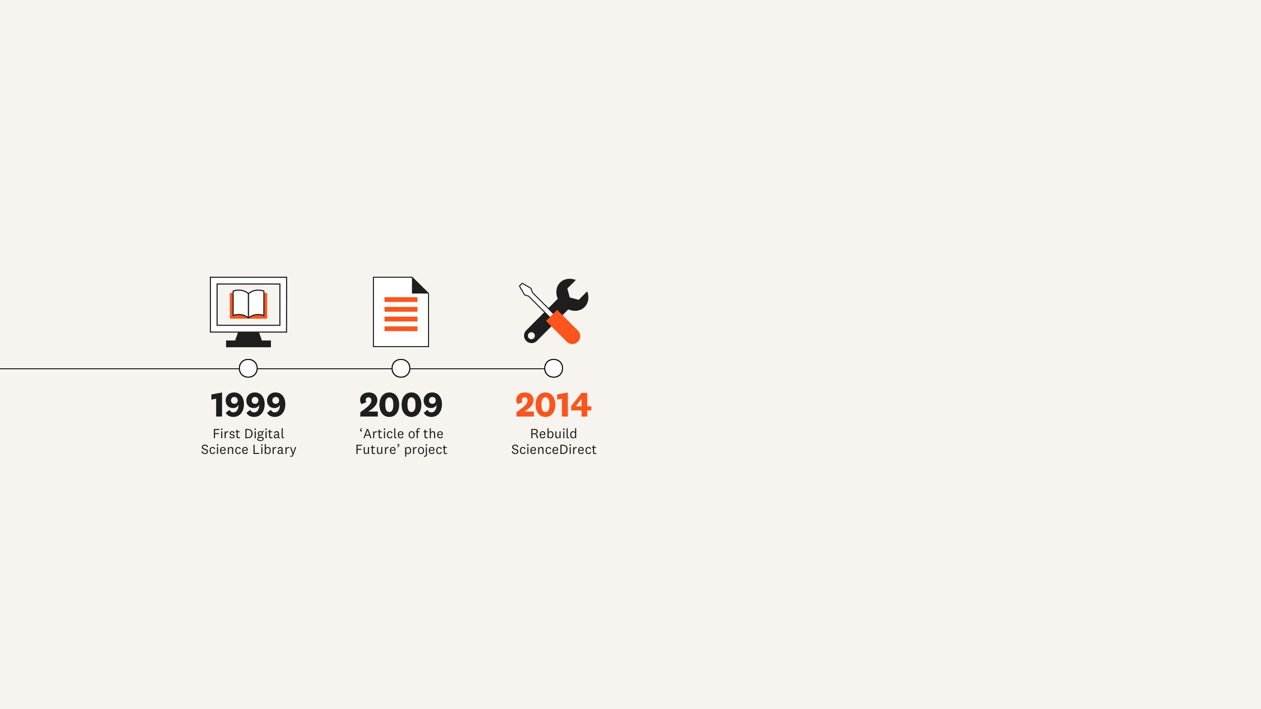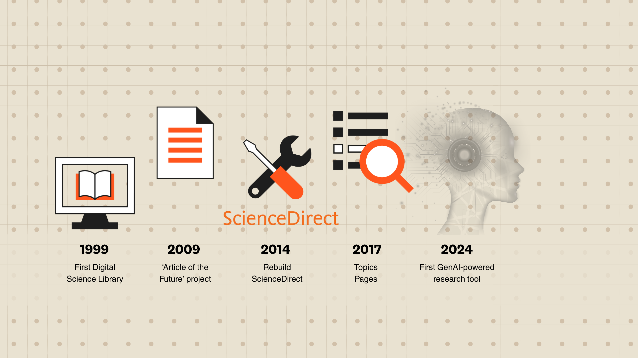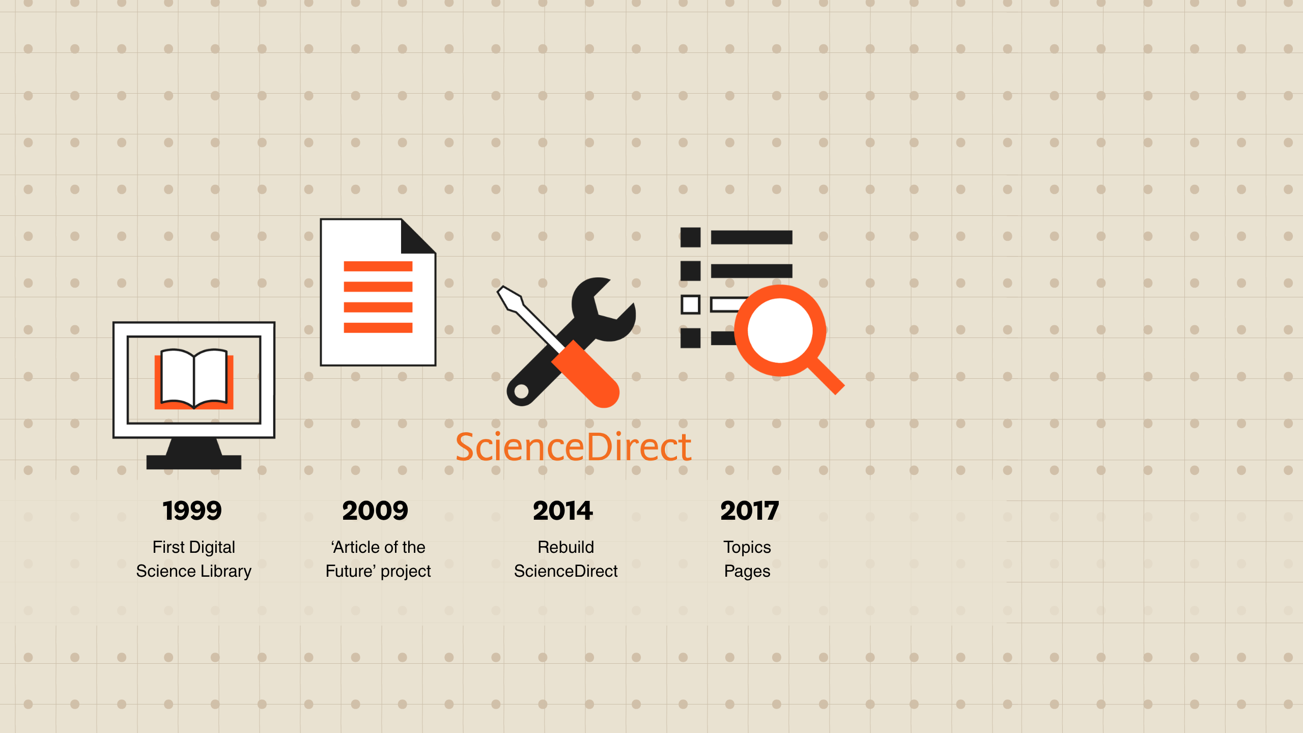 Another technological turning point came in 2014. “We completely re-architected the entire back end of ScienceDirect. It moved from this monolith to a very flexible platform that’s built on microservices,” says Rose L’Huillier, Senior Vice President for Researchers and Librarians Solutions at Elsevier. The overhaul also delivered a fast and improved search function that returns results in seconds.