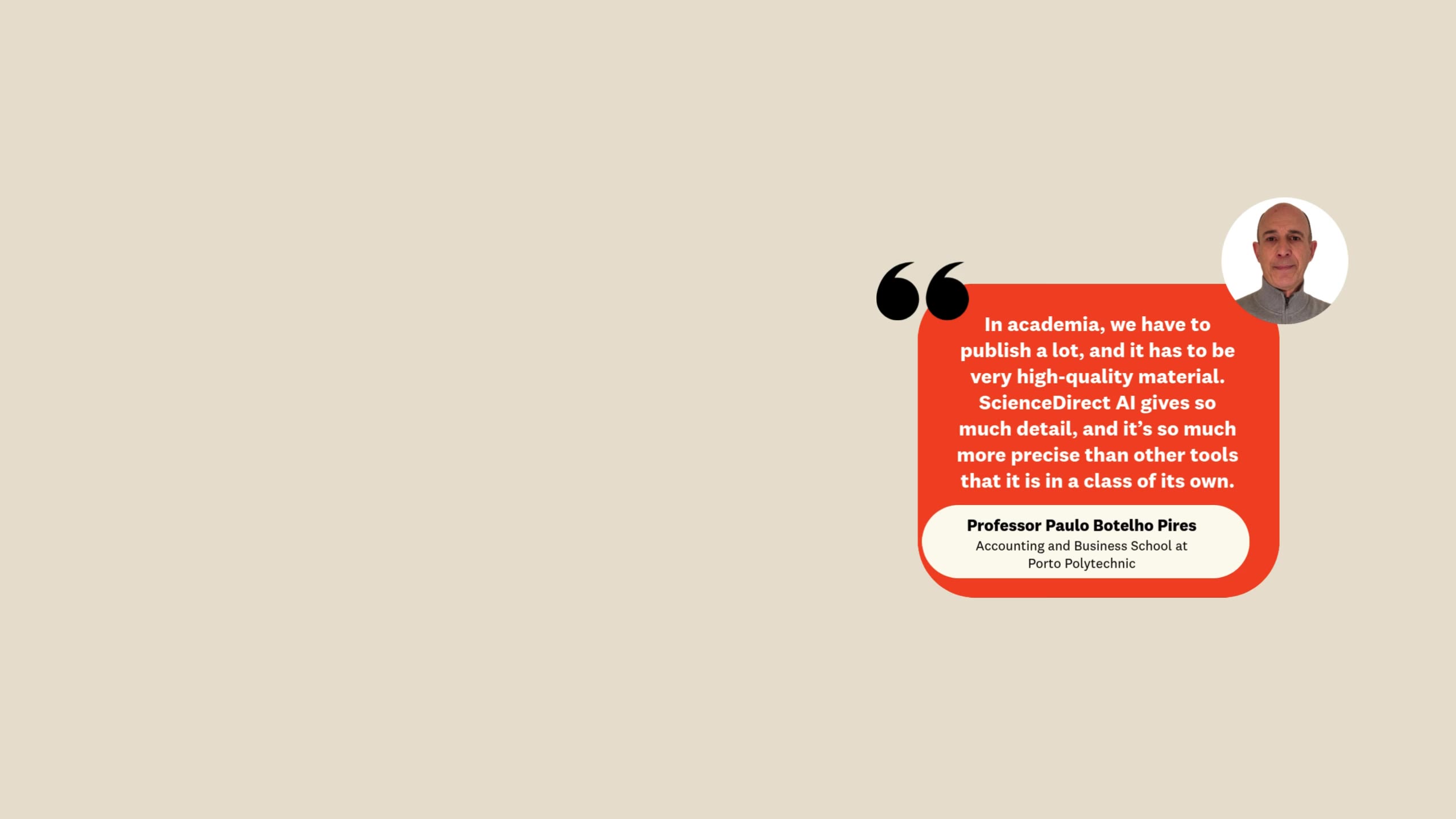 The reduction in time spent on labour-intensive tasks can help support innovation and discovery, and improve researchers’ focus and productivity. “In academia, we have to publish a lot, and it must be very high-quality material. ScienceDirect AI gives so much detail, and it’s so much more precise than other tools that it is in a class of its own,” says Pires at Porto Polytechnic. He also notes that accuracy and reliability save a lot of time. “Whenever I use other AI tools, I have to spend a lot of time verifying what the tool provides,” he says.
